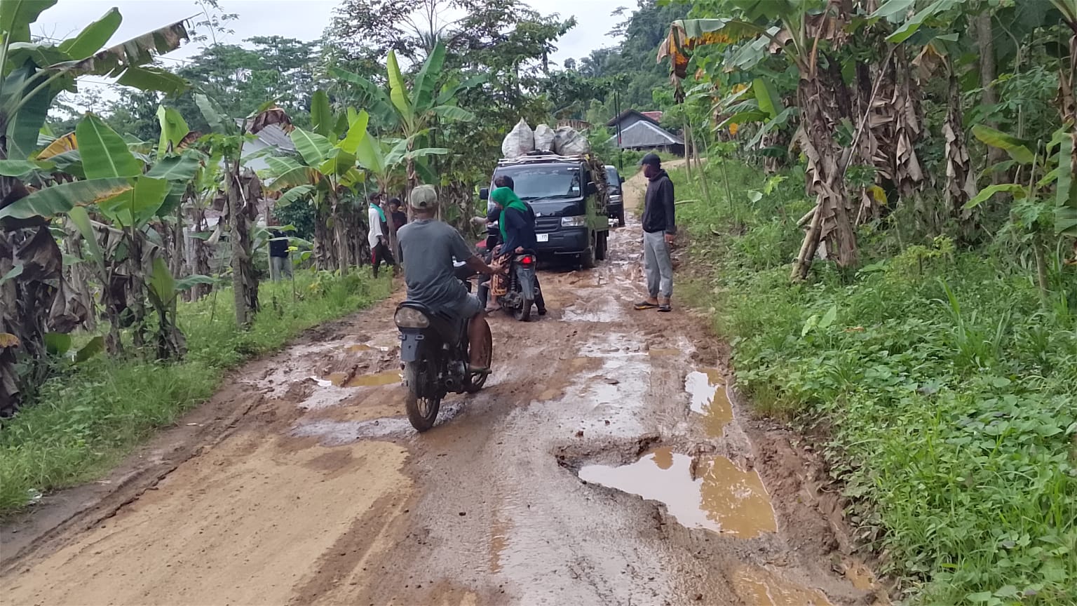 “Ini jalan utama bagi dua desa untuk aktivitas sehari-hari. Kalau kondisi jalan seperti ini terus, bisa-bisa roda perekonomian terhambat,” keluh Asep.